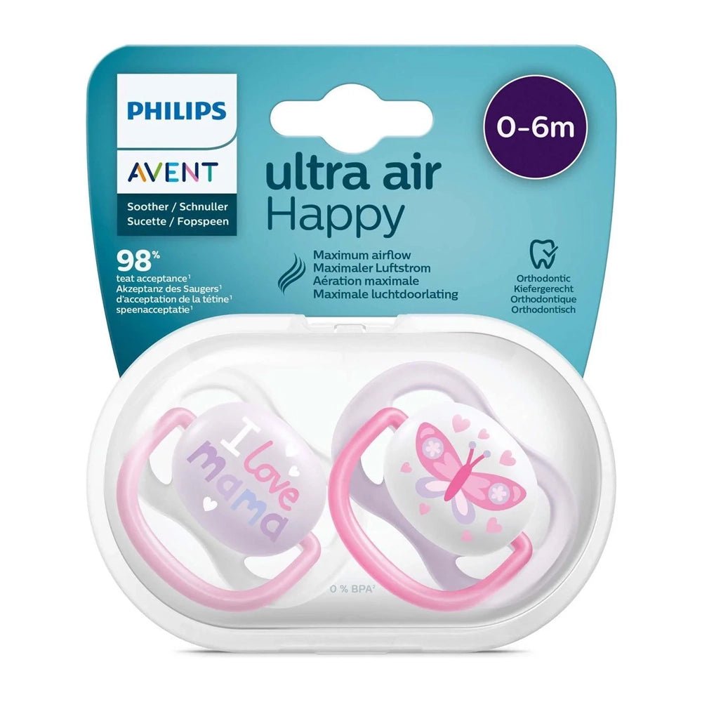 Avent Lot de 2 Sucettes Ultra Air Collection Happy 0-6m Fille :