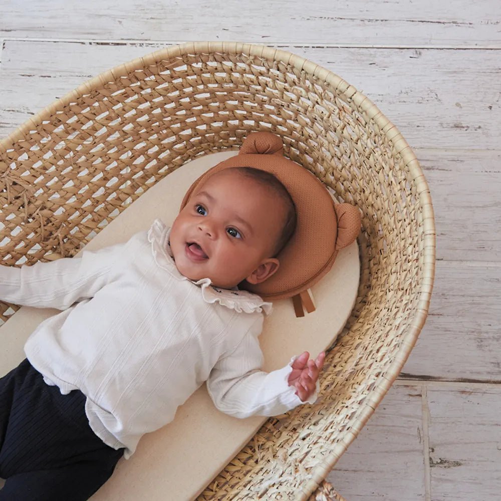 Le coussin P’tit Panda Air+ est spécialement conçu pour maintenir la tête de bébé dans une position optimale et favoriser une forme arrondie du crâne, réduisant ainsi le risque de plagiocéphalie.