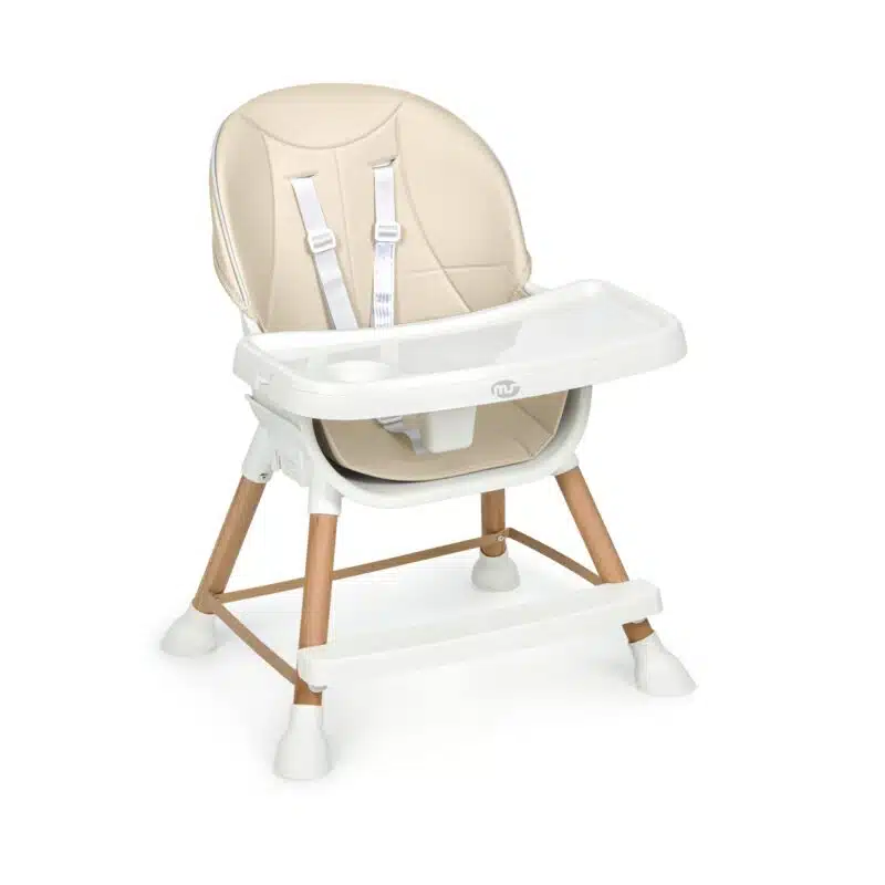La chaise haute pour bébé Mika Plus a 5 fonctions – Elle sert de chaise haute pour bébé, de chaise pour enfant, de tabouret, de tabouret pour enfant et de siège d’appoint.