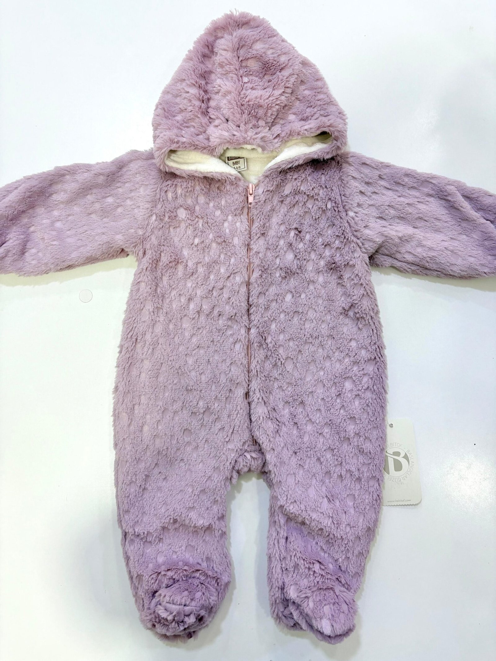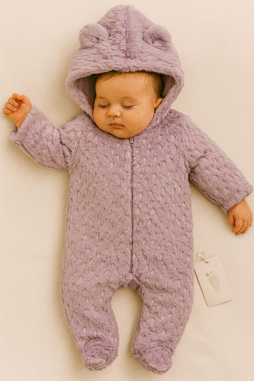 Combinaison bébé en peluche violette – Douceur et chaleur assurées