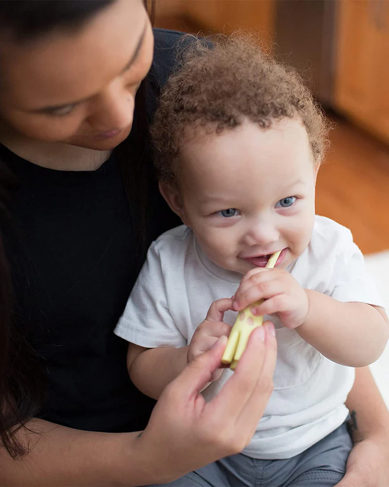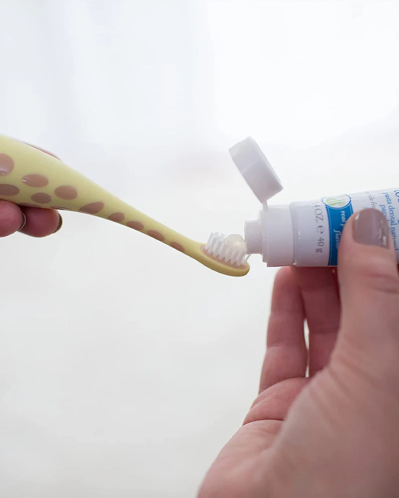 Établissez une bonne hygiène bucco-dentaire avec bébé et amusez-vous à le faire, avec les poils super doux de la brosse à dents Giraffe Infant-to-Toddler.