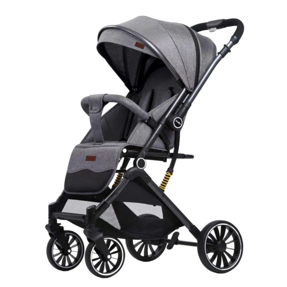 Poussette réversible légère 525 – Kidilo avec suspension et grandes roues pour un accès confortable lors de la traversée de sentiers accidentés ou de bosses.