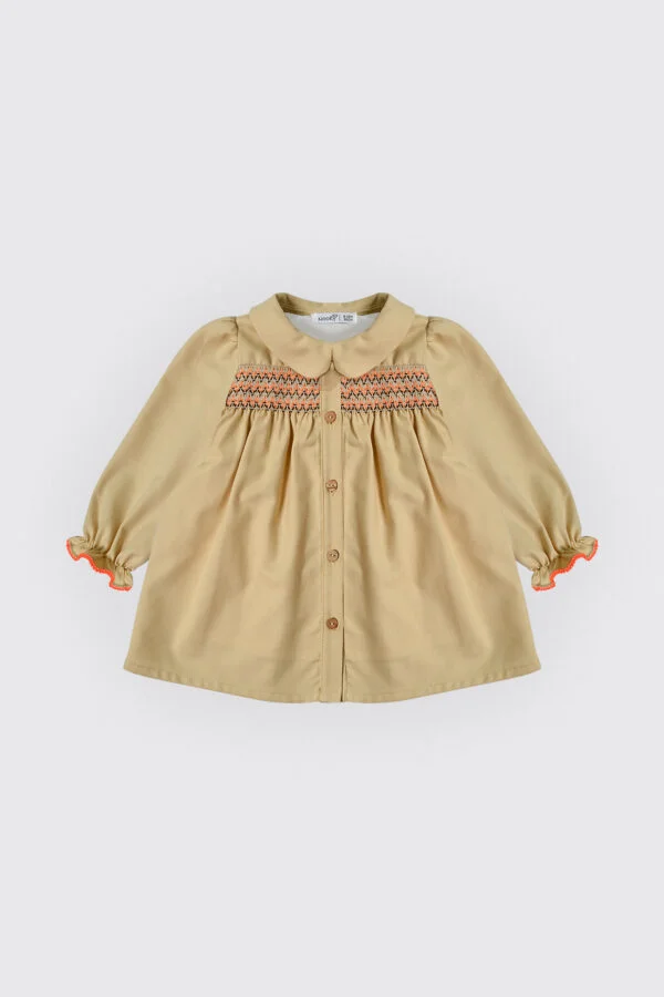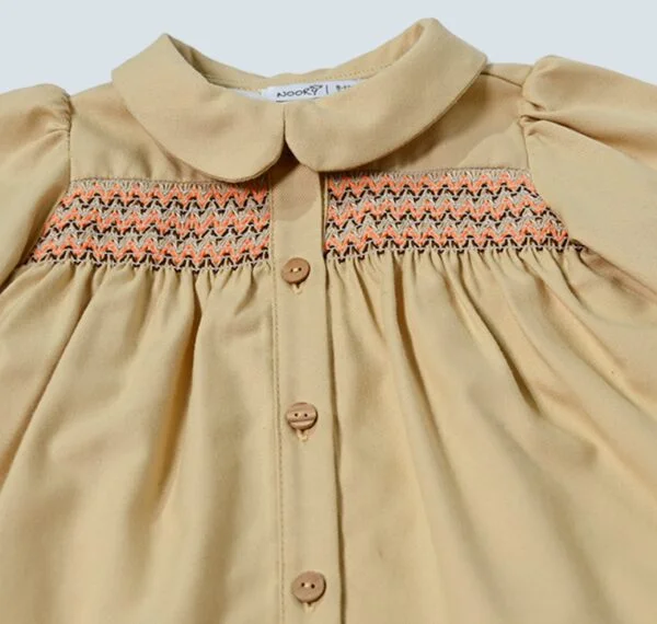 Une élégante robe beige pour fille, simple et raffinée, parfaite pour un look chic et confortable.