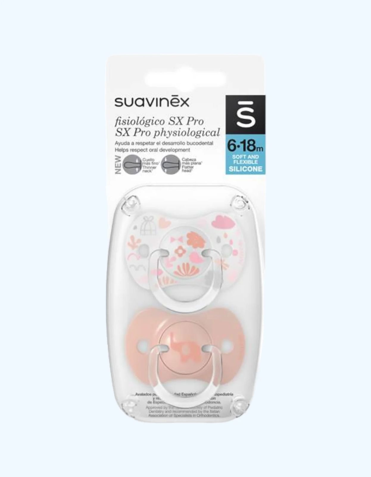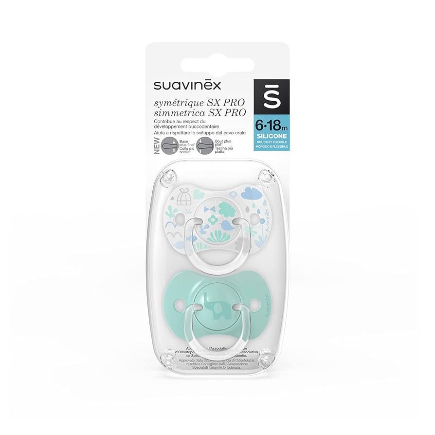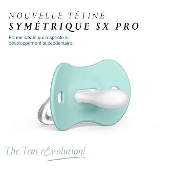 Lot de 2 tétines symétriques avec la nouvelle tétine symétrique SX Pro, ultra-plate. Forme adaptée à la bouche